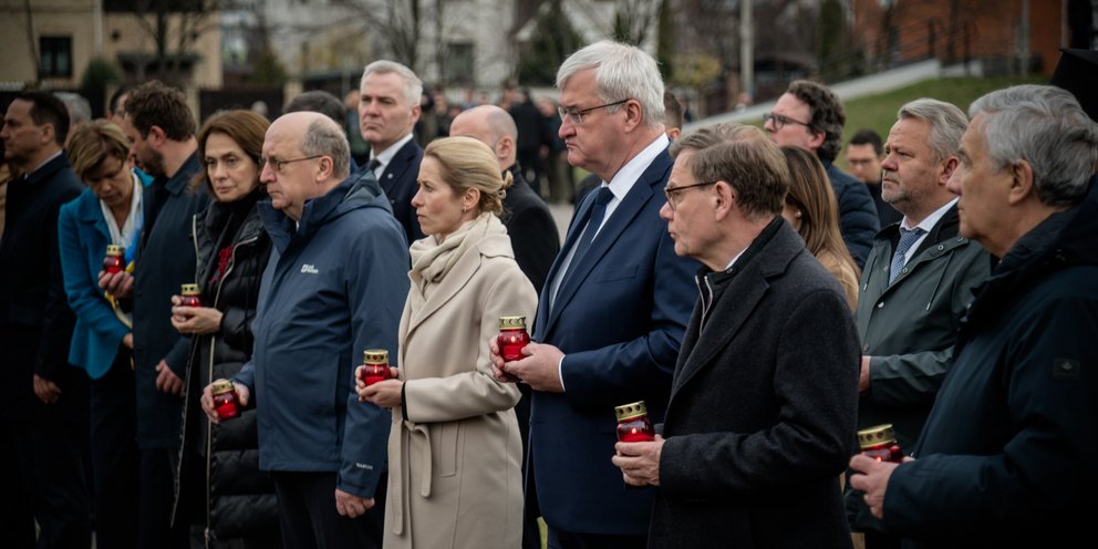 Αξιωματούχοι της ΕΕ και υπουργοί Εξωτερικών άναψαν κεριά στο μνημείο των θυμάτων της σφαγής και επισκέφθηκαν μια εκκλησία, η οποία φιλοξενεί μια έκθεση φωτογραφιών και βίντεο.