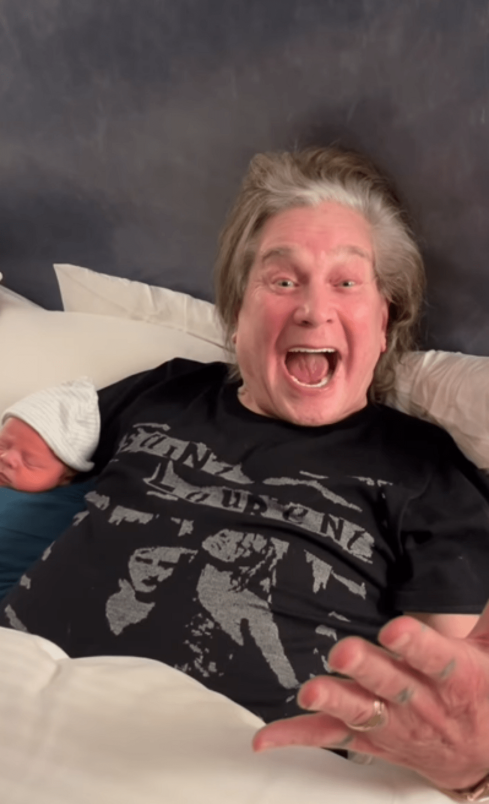 Ο εμβληματικός τραγουδιστής των Black Sabbath, ο οποίος έφυγε από τη ζωή τον περασμένο Ιούλιο σε ηλικία 76 ετών, φαίνεται σε χαλαρές οικογενειακές στιγμές: ξαπλωμένος στο κρεβάτι κρατώντας στην αγκαλιά του τον μικρό ή να παίζει μαζί του στην πισίνα, με το χαρακτηριστικό του χαμόγελο.