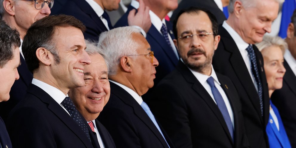 Όπως αναφέρει χαρακτηριστικά το δημοσίευμα: «Ο Γερμανός Φρίντριχ Μερτς, ο Γάλλος Εμανουέλ Μακρόν και η Ιταλίδα Τζόρτζια Μελόνι -οι ηγέτες τριών από τις 10 μεγαλύτερες οικονομίες του κόσμου- καθώς και οι άλλοι 24 συμμετέχοντες, μπορούσαν μόνο να κοιτάζουν αλλού, να τσακώνονται μεταξύ τους ή να προσφέρουν ελάχιστα πέρα από λόγια, ενώ οι βομβαρδισμοί, οι εκτοξεύσεις πυραύλων και οι δολοφονίες συνεχίζονταν».