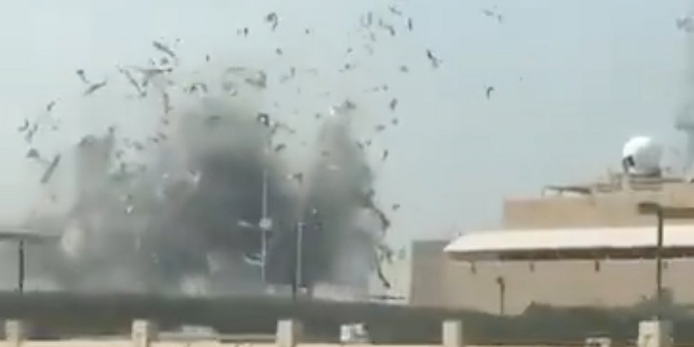 Συγκλονιστικές είναι οι εικόνες από τη στιγμή που ιρανικός πύραυλος χτυπάει το αρχηγείο του 5ου Στόλου του Αμερικανικού Ναυτικού στο Μπαχρέιν.