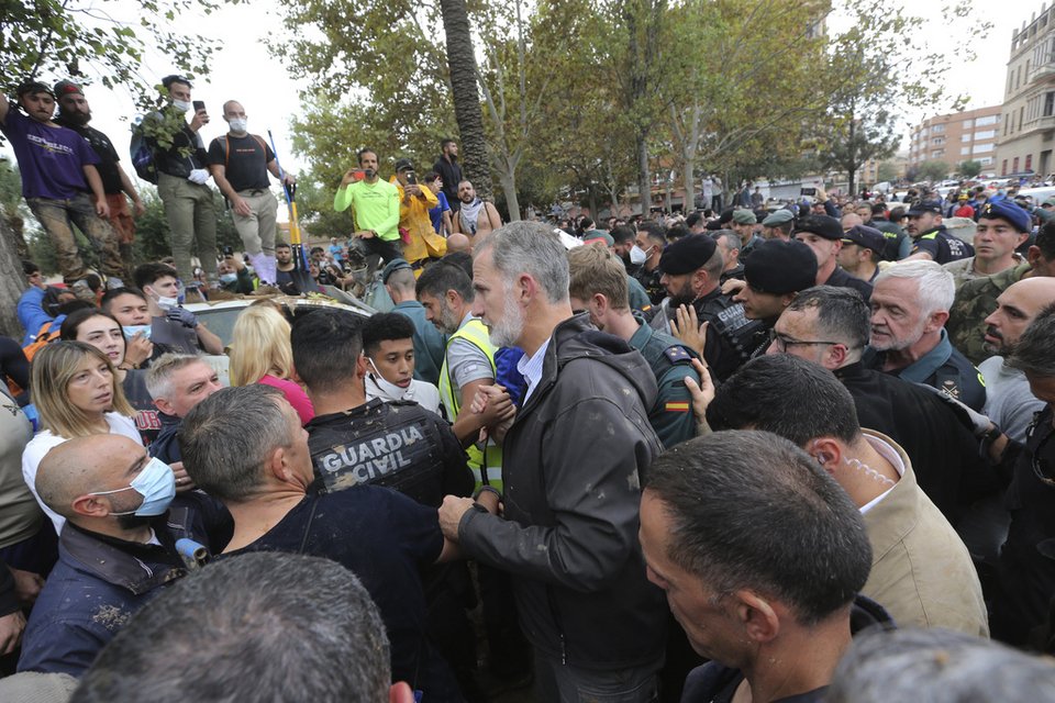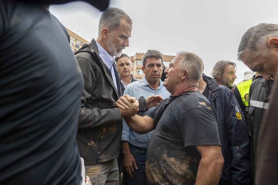 Με πρωτοβουλία του Παλατιού η πολιτειακή ηγεσία της Ισπανίας επισκέφθηκε χθες την Παϊπόρτα, μια από τις πόλεις που επλήγησαν σφοδρά από την πλημμύρα, μετρά δεκάδες απώλειες ανθρώπων και παραμένει ακόμη κάτω από τις λάσπες, με τους κατοίκους της να έχουν χάσει δικούς τους ανθρώπους και περιουσίες. Η περιοχή της Βαλένθια κυριολεκτικά μοιάζει βομβαρδισμένη, τα πάντα κατεστραμμένα, άνθρωποι δίνουν επί μέρες αγώνα για να σταθούν στα πόδια τους ενώ σχεδόν όλοι έχουν κάποιον δικό τους άνθρωπο να θρηνούν. Η οργή κατευθύνεται στην τοπική και την κεντρική κυβέρνηση που όχι μόνο δεν είχε λάβει γενικότερα μέτρα, αλλά απέτυχε να προειδοποιήσει εγκαίρως τους κατοίκους για το σφοδρό καιρικό φαινόμενο που ερχόταν. Τα προειδοποιητικά μηνύματα 112 έφθασαν όταν η περιοχή είχε ήδη «πνιγεί» και οι κάτοικοι είχαν ήδη αιφνιδιαστεί από τον όγκο νερού, οι δρόμοι είχαν πλημμυρίσει ενώ εκείνοι βρίσκονταν ακόμη έξω στους δρόμους μη γνωρίζοντας ότι έρχεται όλεθρος.