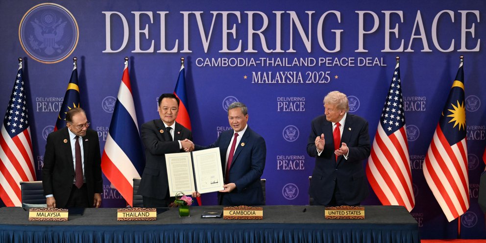 Οι ηγέτες των δύο ασιατικών χωρών υπέγραψαν σήμερα διευρυμένη συμφωνία κατάπαυσης πυρός παρουσία του Αμερικανού προέδρου Ντόναλντ Τραμπ, που μεσολάβησε τον Ιούλιο για τον τερματισμό της αιματηρής, πενθήμερης συνοριακής τους σύγκρουσης.