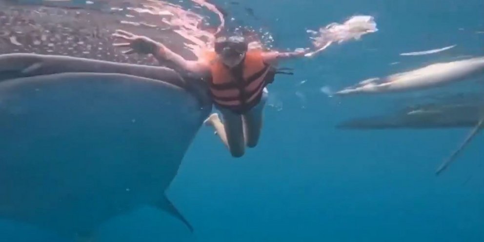 Η γυναίκα είχε πάει για κατάδυση με αναπνευστήρα (snorkeling) σε ένα θαλάσσιο πάρκο και - ενώ πόζαρε για φωτογραφίες κάτω από το νερό – το θαλάσσιο κήτος πλησίασε απαρατήρητο και άγγιξε το μπράτσο της.