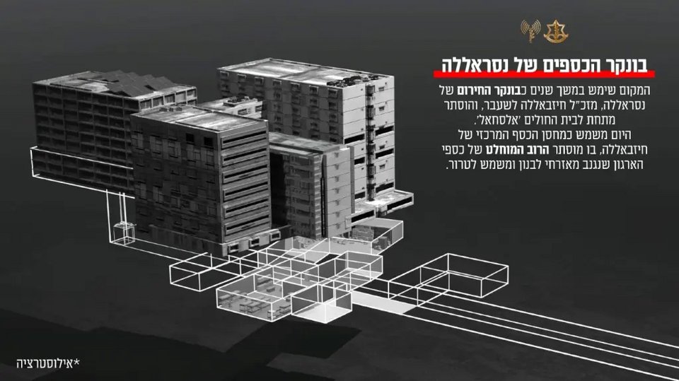 «Εκατοντάδες εκατομμύρια δολάρια βρίσκονται ακριβώς κάτω από το νοσοκομείο Σάχελ, στην καρδιά της Βηρυτού. Τα δύο κτίρια, αριστερά και δεξιά από το νοσοκομείο Σάχελ, λειτουργούν ως είσοδος και έξοδος από το θησαυροφυλάκιο. Το υπόγειο θησαυροφυλάκιο περιέχει δωμάτια, κρεβάτια και υποδομές για διαμονή, ακόμα και για μάχη. Η Χεζμπολάχ έχτισε το θησαυροφυλάκιο κάτω από το Νοσοκομείο Σάχελ και αυτή τη στιγμή βρίσκονται εκεί εκατοντάδες εκατομμύρια δολάρια σε χρήματα και χρυσό. Καλούμε την κυβέρνηση του Λιβάνου και τις Αρχές να μην επιτρέψουν στη Χεζμπολάχ να χρησιμοποιήσει αυτά τα χρήματα για τρομοκρατικές ενέργειες», τόνισε ο εκπρόσωπος του ισραηλινού στρατού, αντιναύαρχος Ντάνιελ Χαγκάρι.
