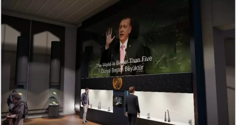 Σε video walls και μπροστά το κτίριο θα προβάλλονται σημαντικές ομιλίες και ατάκες του Ερντογάν όπως «Ο κόσμος είναι μεγαλύτερος από πέντε» ή «Ένα λεπτό » , ενώ θα αναπαρίσταται με ολόγραμμα σε ξεχωριστό χώρο στο μουσείο η μετατροπή της Αγίας Σοφίας σε τζαμί.