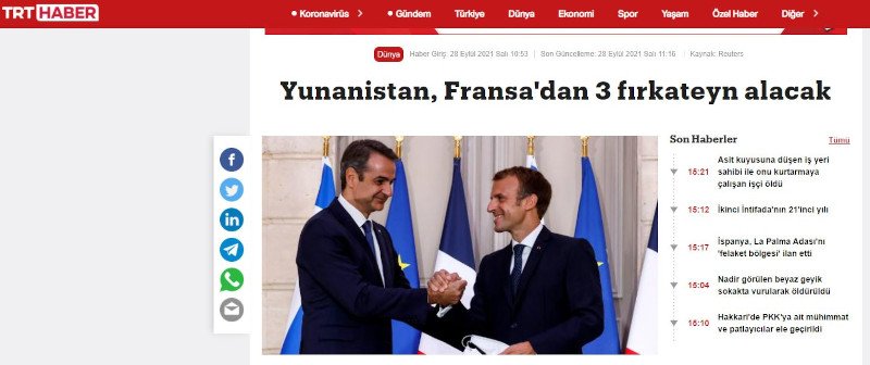 Το δίκτυο TRT αναφέρει ότι η Ελλάδα αγοράζει τρεις φρεγάτες από τη Γαλλία,