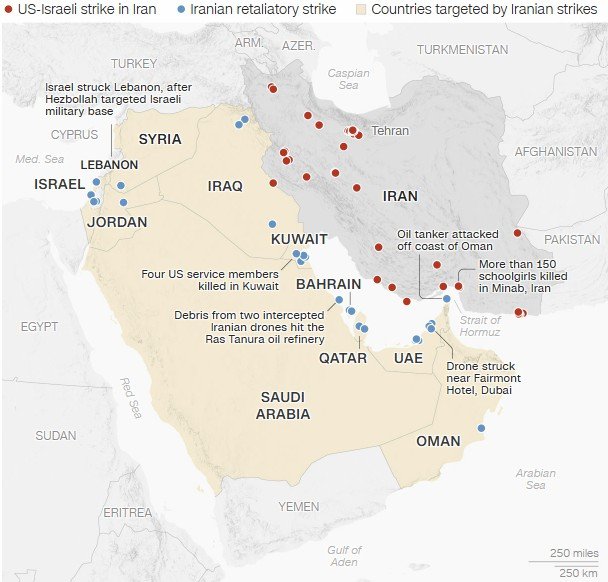 Το CNN δημοσίευσε χάρτη με τα χτυπήματα που έχουν καταφέρει και οι δύο πλευρές.