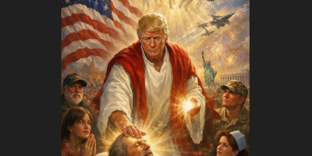 Ο πρόεδρος των ΗΠΑ ανέβασε στο Truth Social μία εικόνα τεχνητής νοημοσύνης με τον ίδιο ως Ιησού Χριστό που θεραπεύει τους αρρώστους, πλαισιωμένο από αετούς, μαχητικά αεροσκάφη και το Άγαλμα της Ελευθερίας.