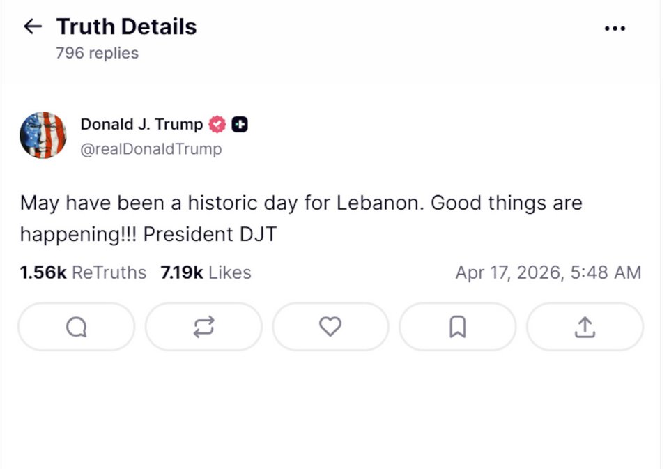 «Ίσως ήταν μια ιστορική μέρα για τον Λίβανο. Συμβαίνουν καλά πράγματα!!! Πρόεδρος DJT»