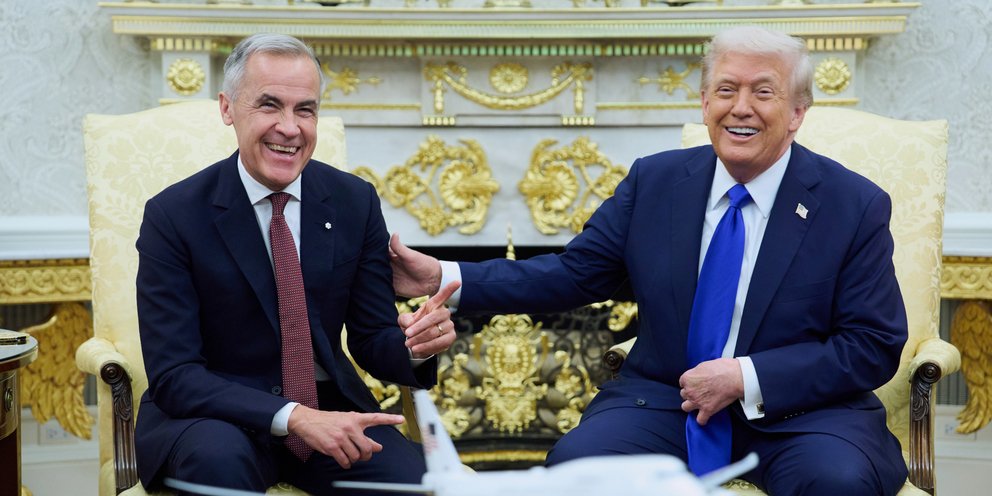 Όπως οι περισσότεροι ξένοι ηγέτες που γίνονται δεκτοί από τον Ντόναλντ Τραμπ, ο Μαρκ Κάρνεϊ κατέβαλε κάθε προσπάθεια να του φτιάξει τη διάθεση. Και αυτό από την άφιξή του στον Λευκό Οίκο, για τη δεύτερη επίσκεψή του μετά την εκλογή του την άνοιξη.