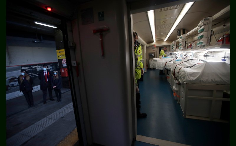Το τρένο – νοσοκομείο με τις δύο μηχανές και τα οκτώ βαγόνια – καθένα απ’ τα οποία είναι επανδρωμένο μ’ έναν γιατρό και τέσσερις νοσηλευτές - εγκαινιάστηκε χθες παρουσία του υπουργού Υγείας Ρομπέρτο Σπεράντσα, του διευθύνοντος συμβούλου των Ιταλικών Σιδηροδρόμων (FS) Τζιανφράνκο Μπατίστι και του προέδρου της περιφέρειας του Λάτσιο και απερχόμενου Γ.Γ. του Δημοκρατικού Κόμματος Νίκολα Τζινγκαρέτι στον κεντρικό σιδηροδρομικό σταθμό Termini της Ρώμης με στόχο την αποσυμπίεση του εθνικού συστήματος υγείας της Ιταλίας καθώς η πανδημία καλπάζει στη χώρα και οι νεκροί έχουν ξεπεράσει τους 100.000. «Μπορεί να ταξιδέψει σ’ όλη την Ευρώπη, δεν υπάρχει άλλο όμοιό του στη Γηραιά Ήπειρο», είπε ο Μπατίστι.