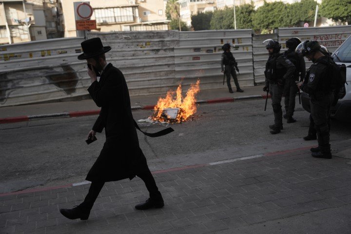 Η αστυνομία καταστολής ταραχών στο Μπνέι Μπρακ, στα περίχωρα του Τελ Αβίβ, χρησιμοποίησε χειροβομβίδες κρότου-λάμψης εναντίον του πλήθους και συνέλαβε 23 άτομα, σύμφωνα με νεότερη ανακοίνωση της αστυνομίας.