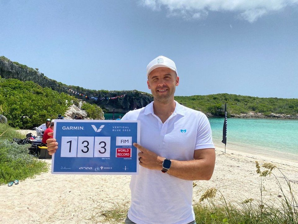 Ο 36χρονος ελεύθερος δύτης, που έχει ήδη στην κατοχή του 25 παγκόσμια ρεκόρ, πραγματοποίησε δύο καταδύσεις, την Παρασκευή και το Σάββατο, στο δεύτερο βαθύτερο θαλάσσιο σπήλαιο στον κόσμο, το Dean's Blue Hole στις Μπαχάμες.