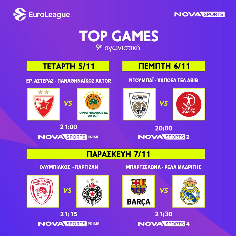 Η EuroLeague, η κορυφαία ευρωπαϊκή διασυλλογική διοργάνωση στο χώρο του μπάσκετ και μεγαλύτερη όλων των εποχών, ετοιμάζεται για τη συναρπαστική 9η αγωνιστική με ελληνοσερβικές μονομαχίες και El Clasico στο παρκέ του Novasports!