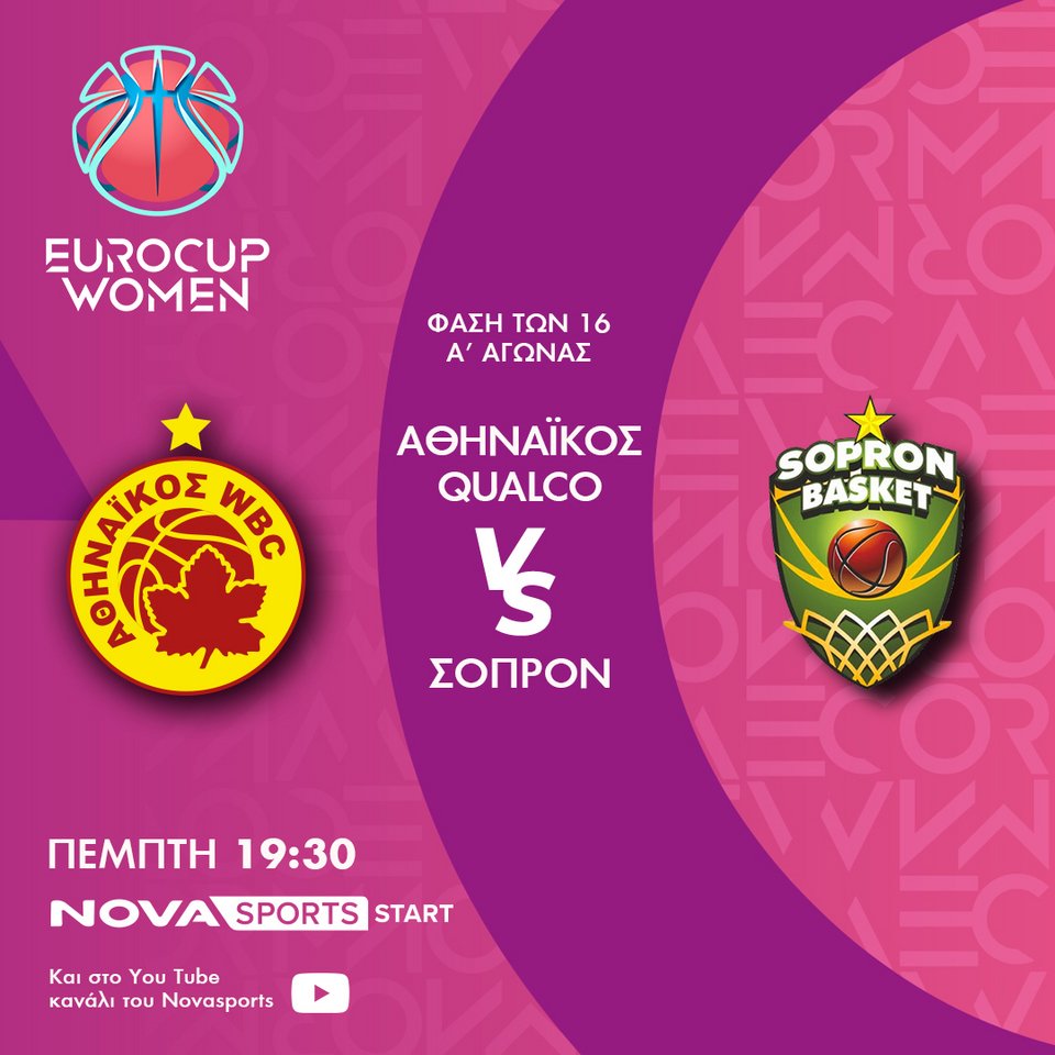 Την ίδια στιγμή η ομάδα μπάσκετ Γυναικών του Αθηναϊκού Qualco υποδέχεται τη Σόπρον (15/1, 19:30) στην πρώτη αναμέτρηση για τη φάση των «16» του EuroCup.