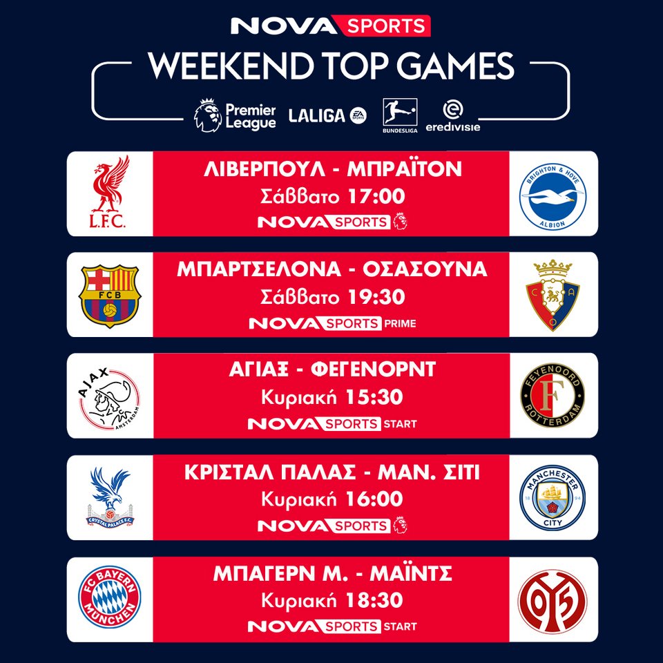 Αναλυτικά το πρόγραμμα των καναλιών Novasports έχει ως εξής: