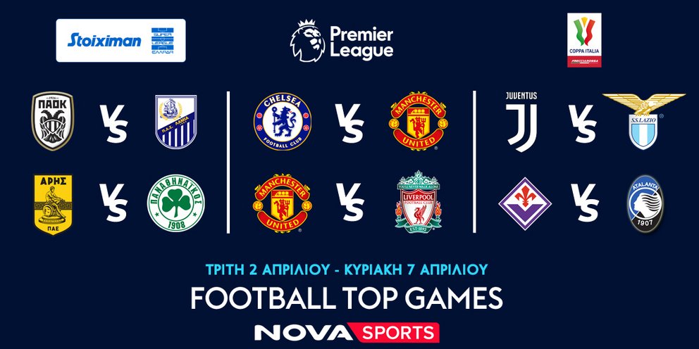Οι συνδρομητές Novasports θα έχουν την ευκαιρία να απολαύσουν πλούσιο θέαμα και από τα ευρωπαϊκά γήπεδα! Η PremierLeague το κορυφαίο πρωτάθλημα του κόσμου συνεχίζει να καθηλώνει και αυτή την εβδομάδα οι λάτρεις της «στρογγυλής θεάς» θα δουν διπλή αγωνιστική (31η & 32η) με το ενδιαφέρον να στρέφεται στα δύο ντέρμπι Τσέλσι – Μάντσεστερ Γιουνάιτεντ (4/4, 22:15) και Μάντσεστερ Γιουνάιτεντ – Λίβερπουλ (7/4, 17:30), αλλά και στα παιχνίδια Άρσεναλ – Λούτον (3/4, 21:30), Μάντσεστερ Σίτι – Άστον Βίλα (3/4, 22:15), Λίβερπουλ – Σέφιλντ Γιουνάιτεντ (4/4, 21:30) και Κρίσταλ Πάλας – Μάντσεστερ Σίτι (6/4, 14:30), Μπράιτον – Άρσεναλ (6/4, 19:30). Και φυσικά όλη η δραστηριότητα με τις εκπομπέςPremierLeagueKickoff και PremierLeagueTheShow με τον Άγγελο Στυλιάδη.