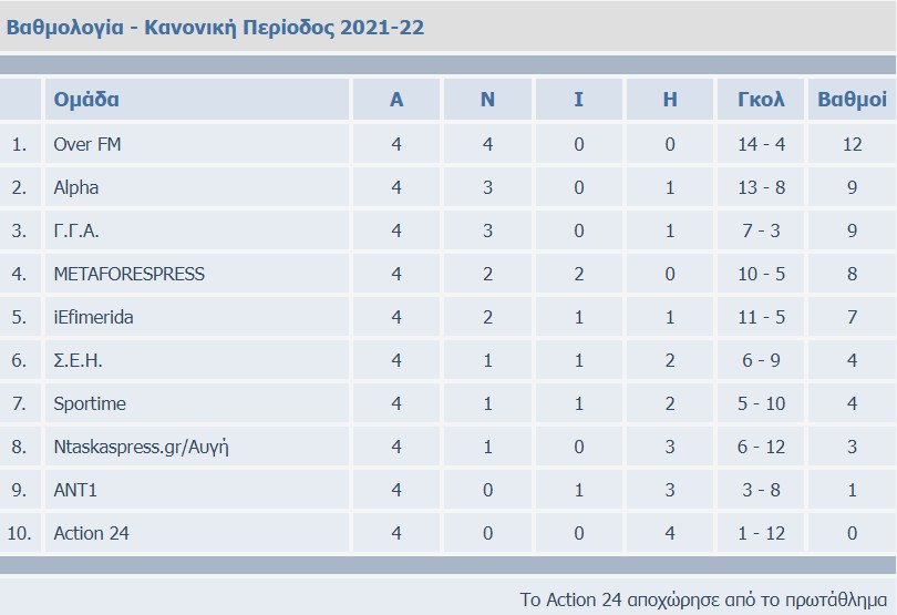 H βαθμολογία του Πρωταθλήματος Τύπου