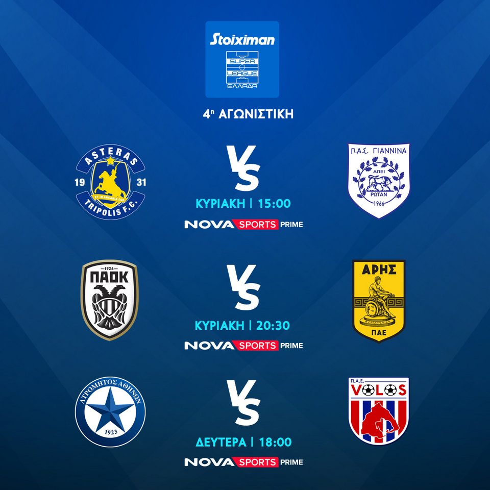 Οι φίλοι του ελληνικού ποδοσφαίρου, μετά την ολοκλήρωση των αγωνιστικών υποχρεώσεων της Εθνικής μας ομάδας για τα προκριματικά του UEFA Euro 2024 (5η & 6η αγωνιστική), στρέφουν το ενδιαφέρον τους στο πρωτάθλημα της Stoiximan Super League εκεί όπου δεσπόζει για την 4η αγωνιστική το «αιώνιο» ντέρμπι της Θεσσαλονίκης, ΠΑΟΚ – Άρης που θα διεξαχθεί στο γήπεδο της Τούμπας. Παράλληλα, οι συνδρομητές θα παρακολουθήσουν και τις ενδιαφέρουσες αναμετρήσεις Αστέρας Τρίπολης – ΠΑΣ Γιάννινα και Ατρόμητος – Βόλος ΝΠΣ. Οι αγώνες του ελληνικού πρωταθλήματος θα πλαισιωθούν και με τις αγαπημένες εκπομπές των φιλάθλων «Η Ώρα των Πρωταθλητών» με τους Γιαννίκο Δούσκα, Λίλα Κουντουριώτη και Χριστίνα Κομίνη καθώς και «MondayFootballClub» με τον Ντέμη Νικολαΐδη και τον Γιάννη Πάγκο.