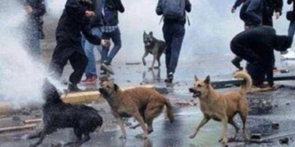 Η αστυνομική βία στην Τουρκία φαίνεται πως δεν περιορίζεται μόνο στους διαδηλωτές, αλλά και στα σκυλιά που βρίσκονται στους δρόμους της εξέγερσης, με τους αστυνομικούς να μην διστάζουν να ρίχνουν δακρυγόνα και νερό στα σκυλιά.
