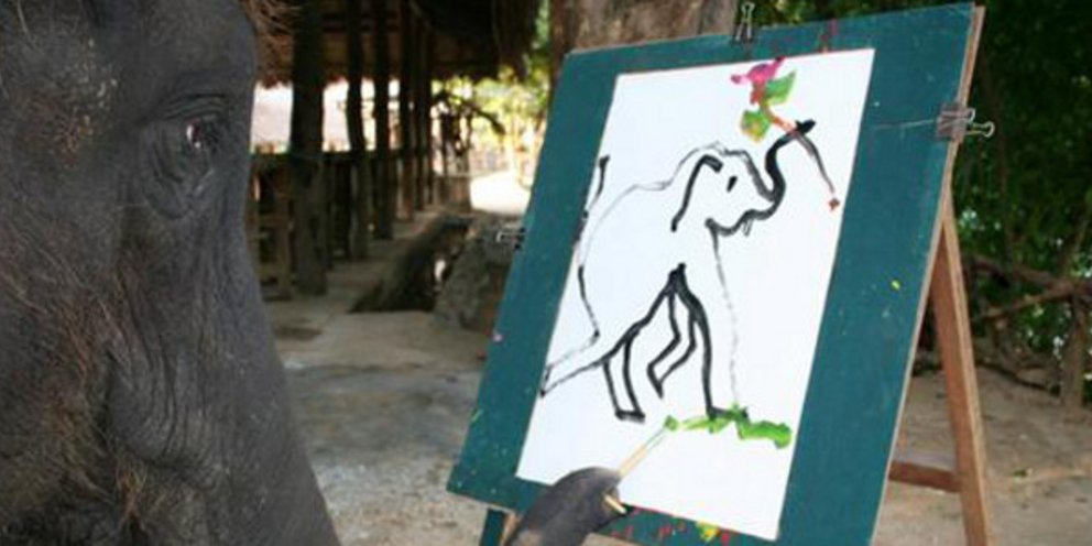 Θαυμασμό και συγκίνηση προκαλεί η εικόνα ενός ελέφαντα να ζωγραφίζει με απίστευτη τεχνική ένα ελεφαντάκι που κρατάει ένα λουλούδι στην Ταϊλάνδη.