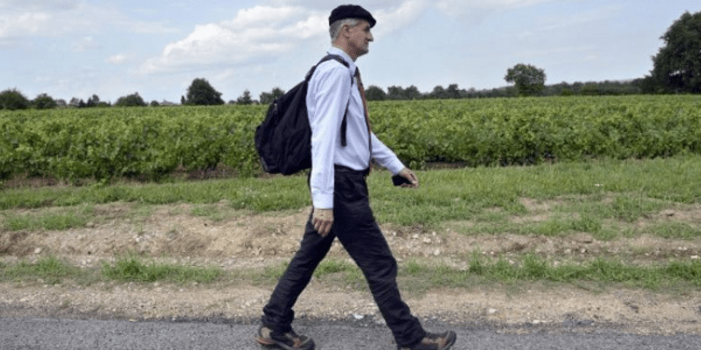«Με οδηγεί η αγωνία να ακούσω τα βάσανα, τις αμφιβολίες και τα όνειρα των πολιτών» δηλώνει. Ξεκίνησε με τα πόδια -όχι στην εκλογική του περιφέρεια- προς τον Βορρά, χωρίς σχέδιο. Εξοπλίστηκε με ένα δάνειο από την τράπεζα και ξεκίνησε. Στο δρόμο χάνεται συχνά, αφού δεν υπάρχει πλάνο. Κάποιο διάστημα κρύωσε βαριά επειδή χάθηκε σε ένα δάσος, βγαίνοντας από την πόλη Havre.