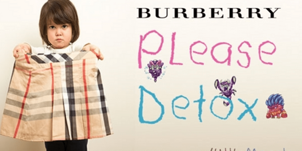 Μάλιστα, η οργάνωση κυκλοφόρησε αφίσα στην οποία ένα παιδάκι κρατάει ένα ρούχο Burberry και ο τίτλος είναι: «Burberry, παρακαλώ μην χρησιμοποιείς χημικά».
