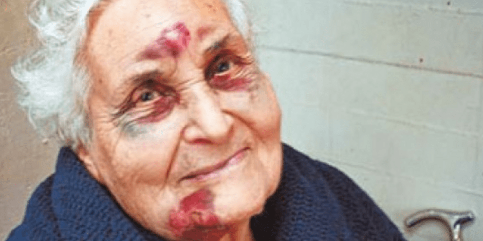 Mια ηλικιωμένη γυναίκα με τα σημάδια από χτυπήματα, σε όλο το πρόσωπό της, είναι σήμερα στο πρωτοσέλιδο της εφημερίδας Τα Νέα και αποτελεί, πραγματικά, την πιο συγκλονιστική εικόνα του πολύπαθου νησιού της Κεφαλονιάς.
