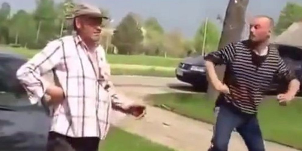 Ο λόγος για δύο Ρώσους, οι οποίοι προσπαθούν να πιαστούν στα χέρια, αλλά έχουν καταναλώσει τόσο αλκοόλ που δεν μπορούν ούτε να στηριχθούν στα πόδια τους. Χαρακτηριστικά είναι τα γέλια των παρευρισκομένων που βλέπουν τους δύο μεθυσμένους να πέφτουν κάτω και να μην μπορούν να σταθούν στα πόδια τους.