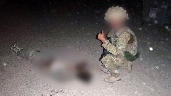 Στις φωτογραφίες που πρωτοδημοσιεύτηκαν στο LiveLeak, φαίνεται ο στρατιώτης δίπλα στη σορό του Ταλιμπάν να σηκώνει τον αντίχειρά του περιχαρής που έφερε σε πέρας την αποστολή του και επιδεικνύει το «τρόπαιό» του.
