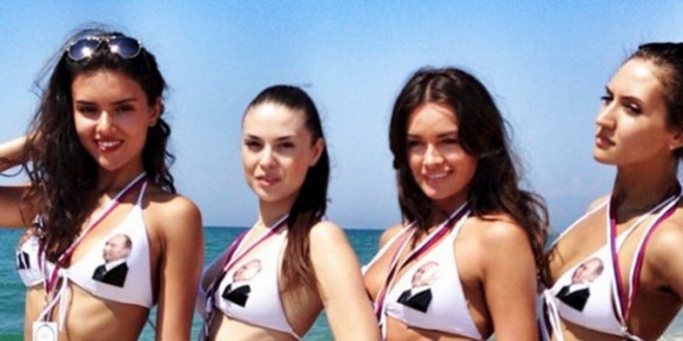 Προκειμένου να εκδηλώσουν ένθερμα τον πατριωτισμό τους, νεαρά κορίτσια αποφάσισαν να φορέσουν τα «Putinkinis», τα οποία είναι μικροσκοπικά μπικίνι με φωτογραφίες του Ρώσου προέδρου.