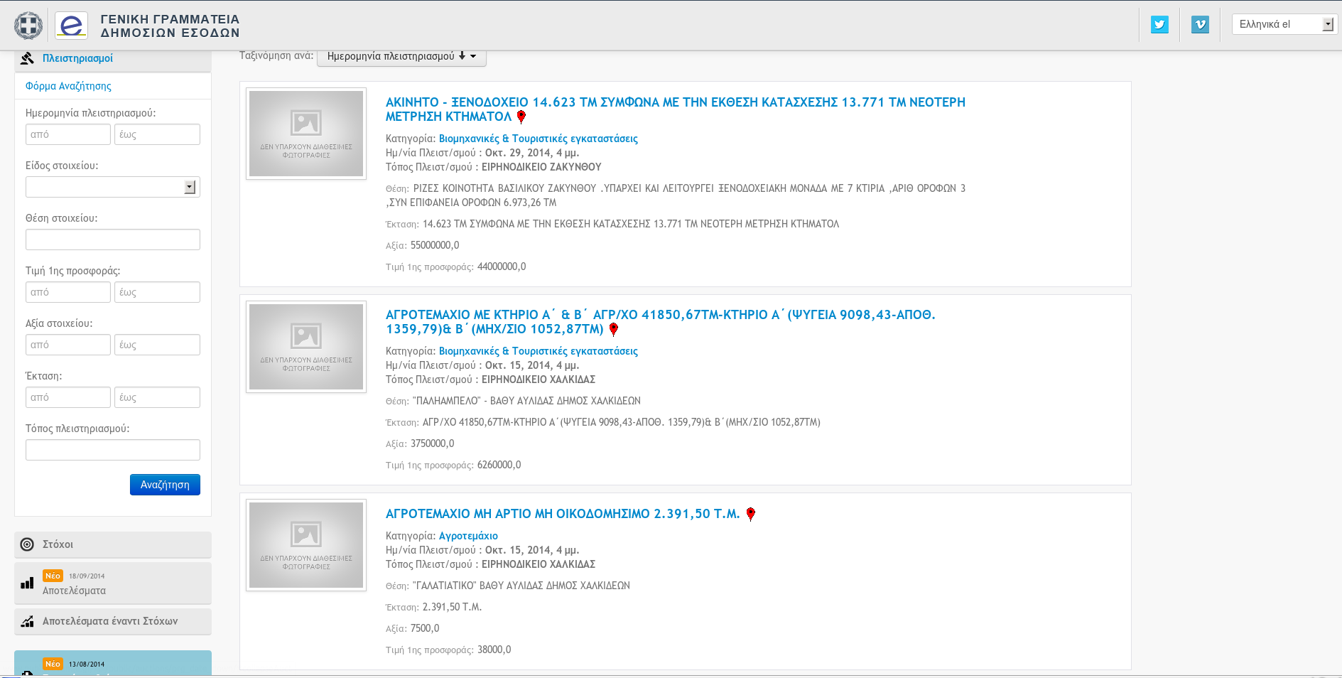 Στην ηλεκτρονική πλατφόρμα publicrevenue.gr θα κοινοποιούνται τα στοιχεία του οφειλέτη (επωνυμία, ΑΦΜ), τα στοιχεία του ακινήτου και η τιμή πώλησης. Τα τρία πρώτα που ανέβηκαν είναι τα εξής: