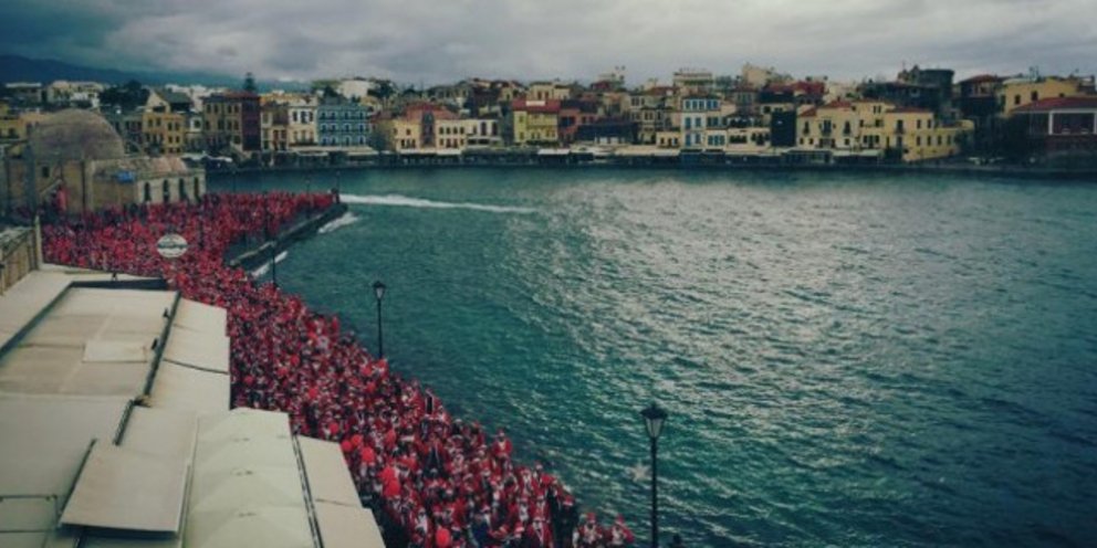 Πέντε χιλιάδες Αγιοβασίληδες πλημμύρισαν τους κεντρικούς δρόμους των Χανίων το Σάββατο το μεσημέρι.
