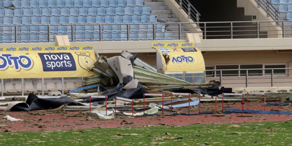 Για ακόμη μια φορά το Παγκρήτιο στάδιο στο Ηράκλειο λόγω της κακοκαιρίας, μετρά μεγάλες ζημιές.