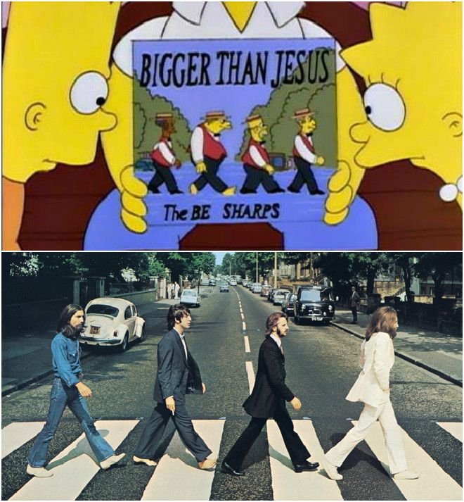 Οι δηλώσεις του Τζον Λένον που χαρακτήριζαν τους Beatles ως «πιο γνωστούς και από τον Χριστό» προκάλεσαν τους δημιουργούς της σειράς. Το χαρακτηριστικό εξώφυλλο του δίσκου Abbey Road, παρουσιάστηκε σε επεισόδιο των Simpsons. Μόνο που ο τίτλος του δίσκου ήταν λίγο... διαφορετικός.