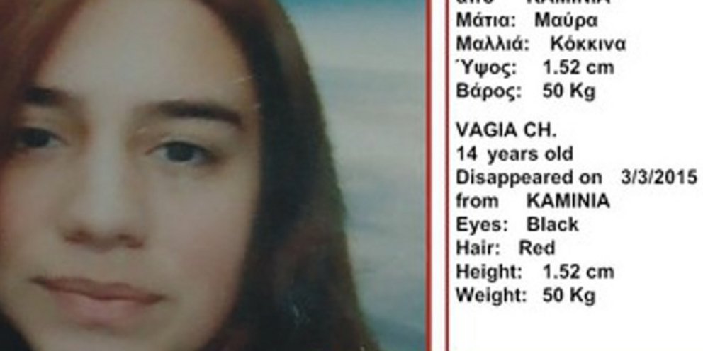 Στις 3 Μαρτίου 2015 στις 13:00, εξαφανίστηκε από την περιοχή των Καμινίων στον Πειραιά, η Βάγια Χ., 14 ετών.