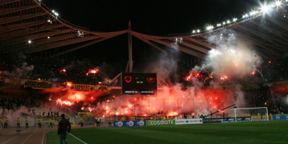 Διακόπτεται οριστικά ο ποδοσφαιρικός αγώνας ΑΕΚ – Ολυμπιακός για το Κύπελλο Ελλάδας έπειτα από εισβολή οπαδών στο γήπεδο και τραυματισμό τριών ατόμων.