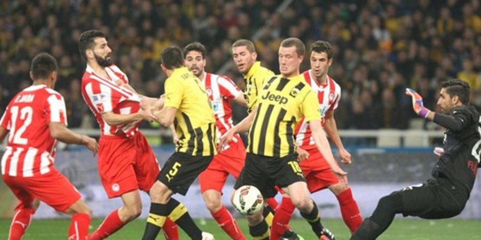 Το πρώτο ημίχρονο ήταν ένα από τα χειρότερα που έχει παρακολουθήσει ποτέ η φίλαθλη Ελλάδα. Η νευρικότητα και στις δύο ομάδες κυριάρχησε από το πρώτο λεπτό και είναι χαρακτηριστικό ότι η πρώτη καλή στιγμή για την ΑΕΚ ήρθε στο 32ο λεπτό με τον Αραβίδη να μην μπορεί να σπρώξει την μπάλα στα δίχτυα. Ο Ολυμπιακός κατάφερε να κάνει το πρώτο σουτ στο 39'με τον Μανιάτη σε ένα 45λεπτο, το οποίο είχε περισσότερα από 60 λάθη και από τις δύο ομάδες και μόλις ένα κόρνερ.