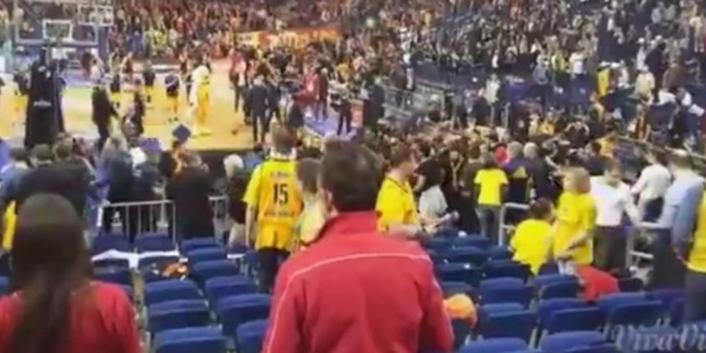 Χωρίς να γίνει γνωστός ο λόγος της συμπλοκής, οι οπαδοί των δύο ομάδων ήρθαν στα χέρια και οι σκηνές που ακολούθησαν στο γήπεδο της Άλμπα δεν θύμιζαν σε τίποτα μπασκετικό αγώνα. Αποτέλεσμα των συγκρούσεων, ήταν η έναρξη της αναμέτρησης να καθυστερήσει μία ολόκληρη ώρα χωρίς να έχει γίνει γνωστό αν υπήρξαν συλλήψεις από τη γερμανική αστυνομία.