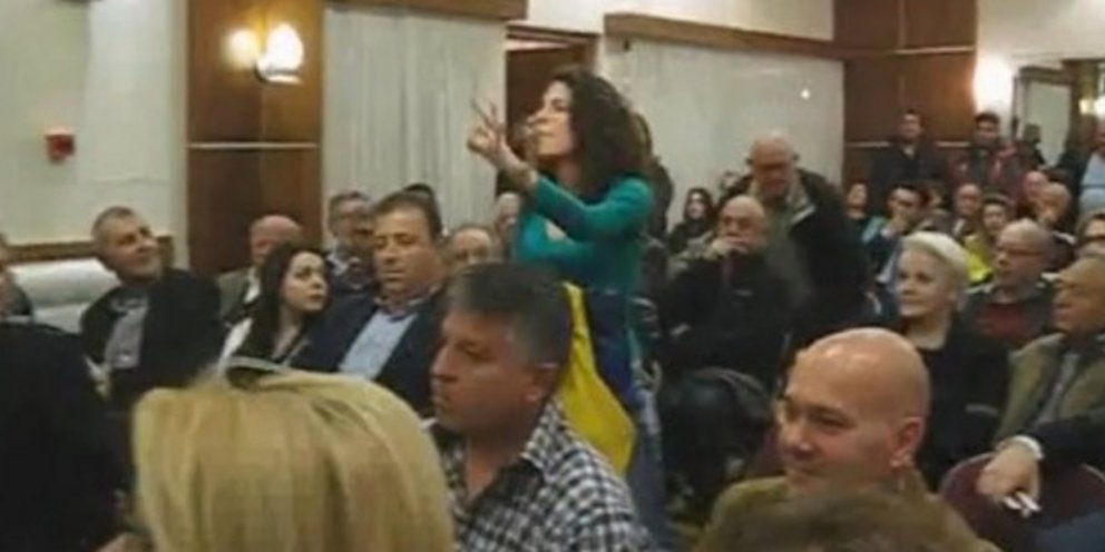 Εν μέσω της κατάμεστης αίθουσας, μία γυναίκα που βρισκόταν στο κοινό προπηλάκισε τον βουλευτή της ΝΔ, κατηγορώντας τον ότι λέει ψέματα και “στολίζοντάς” τον με διάφορα κοσμητικά επίθετα.