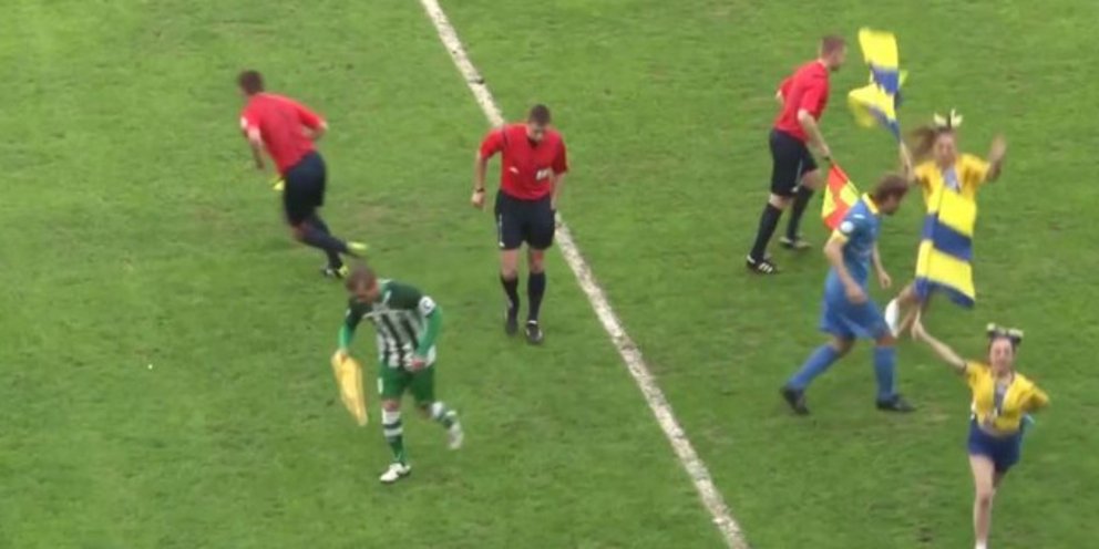Οι δύο αρχηγοί των ομάδων έδωσαν τα χέρια στο κέντρο του γηπέδου και όλα ήταν έτοιμα για να σφυρίξει ο διαιτητής την έναρξη της αναμέτρησης. Οι τσιρλίντερς αποχωρούσαν από τον αγωνιστικό χώρο, όταν μια εξ'αυτών γλίστρισε μόλις είδε μπροστά της τον αρχηγό της Μπάτε Ντιμίτρι Λιχτάροβιτς και πέφτοντας στο έδαφος του έκανε τάκλιν που θα ζήλευε και αμυντικός. Ευτυχώς ο παίκτης δεν τραυματίστηκε ενώ η κοπέλα σηκώθηκε αμέσως από το χορτάρι εξακολουθώντας να κουνάει το σημαιάκι της ομάδας της.