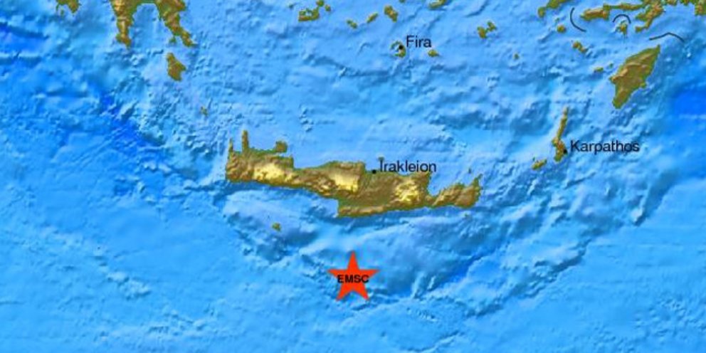 Το επίκεντρο του σεισμού εντοπίζεται στον θαλάσσιο χώρο 108 χιλιόμετρα νότια του Ηρακλείου Κρήτης και 379 χιλιόμετρα Νότια-Νοτιοανατολικά της Αθήνας.