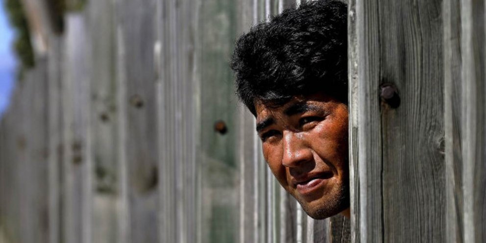 4 Μαΐου 2015. Ενας Αφγανός μετανάστης βγάζει το κεφάλι του έξω από έναν ξύλινο φράχτη ενός παλιού εργοστασίου την ώρα που ετοιμάζεται να βρει έναν τρόπο να τρυπώσει σε ένα από τα πλοία που φέγυουν από την Πάτρα για την Ιταλία.