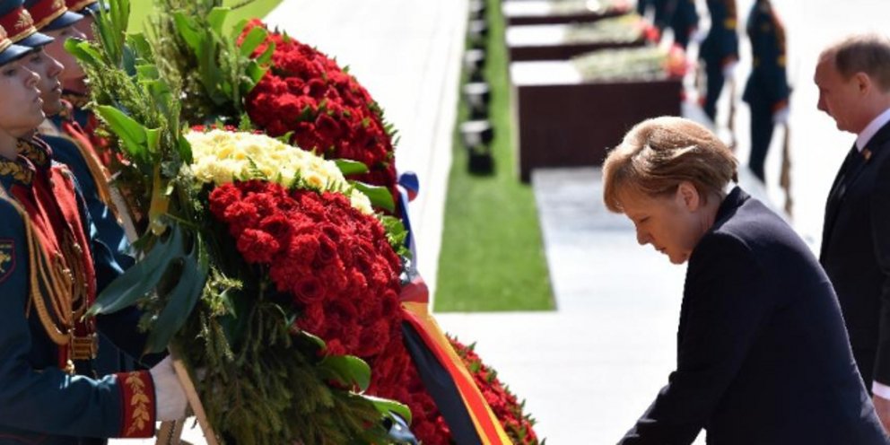 Η καγκελάριος της Γερμανίας Ανγελα Μέρκελ τίμησε τη Κυριακή στη Μόσχα τη μνήμη των σοβιετικών στρατιωτών που σκοτώθηκαν κατά τον Δεύτερο Παγκόσμιο Πόλεμο και ζήτησε συνεργασία με τη Ρωσία, σ' ένα υπόβαθρο εντάσεων αναφορικά με την Ουκρανία.