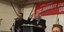 Σε μια συμβολική κίνηση, ύψωσε το χέρι του, έδειξε το χάρτινο «βραχιολάκι» που του είχαν δώσει στην είσοδο, το έκοψε και δήλωσε: «Να σπάσετε τα δεσμά της βίας, της καταστολής και της εκμετάλλευσης!», για να δεχθεί το παρατεταμένο και ενθουσιώδες χειροκρότημα των παρευρισκομένων.