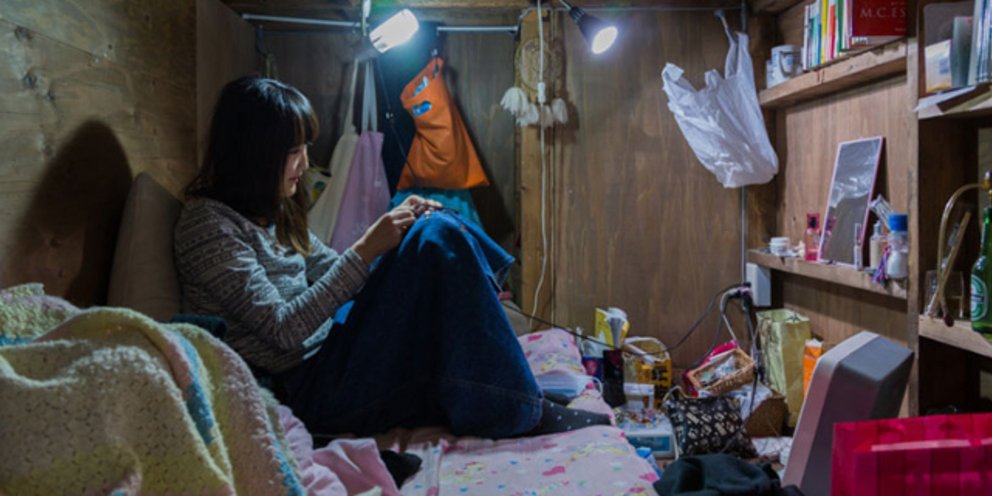 Κατασκευασμένα από ξύλο, τα μικροσκοπικά δωμάτια καλύπτουν ένα ολόκληρο όροφο πολυκατοικίας που στεγάζει γραφεία. Είναι τόσο μικρά που χωράνε μόνο ένα μικρό κρεβάτι, στοιβαγμένα στους τοίχους ράφια, μια λάμπα για φως και wifi internet.