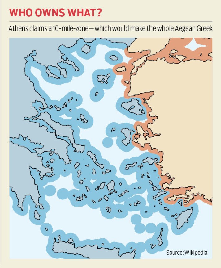 Πολλά από αυτά τα περιστατικά συμβαίνουν τέσσερα μίλια κοντά στις τουρκικές ακτές, περιοχή που η Αθήνα θεωρεί δική της, ενώ η Άγκυρα την έχει βαφτίσει «διεθνή εναέριο χώρο». Η περιοχή περιλαμβάνει ένα σύμπλεγμα 16 νησιών τα οποία η Αθήνα θεωρεί πως βρίσκονται υπό την κυριαρχία της. Το τελευταίο διάστημα, η Τουρκία έχει πετάξει κάθε πέπλο σιωπής και αρνείται ανοιχτά τη θέση της Ελλάδας. Διόλου τυχαίο ότι κατά τον Ιούνιο και τον Ιούλιο τουρκικά μαχητικά πέταξαν πάνω από το Φαρμακονήσι, τον Κουνελονήσι και το Αγαθονήσι.