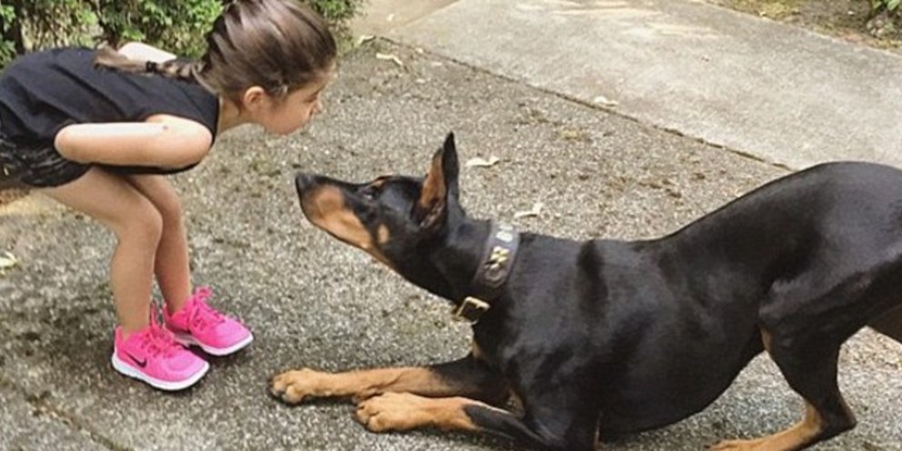 Ενα 4χρονο κορίτσι έχει βρει έναν απίθανο καλύτερο φίλο στο 40 κιλών ντόμπερμαν της και το γλυκό ζευγάρι γρήγορα μετατράπηκε σε σταρ των social media.