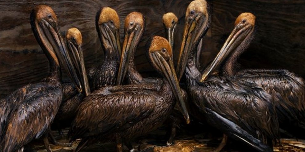 Aυτή η φωτογραφία απεικονίζει καφέ πελεκάνους βουτηγμένους στο πετρέλαιο. Είναι αποτέλεσμα της οικολογικής κατασροφής της διαρροής τουDeepwaterHorizon, δηλαδή από την πετρελαιοκηλίδα της ΒΡ στον κόλπο του Μεξικού. Ανήκει στον φωτογράφο Ντάνιελ Μπελτρά, ο οποίος κέρδισε το βραβείο Veolia Φωτογράφος Περβάλλοντος και Άγριας Ζωής της χρονιάς 2011, από τους πιο έγκυρους διαγωνισμούς φωτογραφίας στον κόσμο.Είναι μία εικόνα που στην αρχή φαίνεται πολύ όμορφη. Όμως όσο περνάει η ώρα καταλαβαίνει κανείς αυτό που απεικονίζει είναι συγκλονιστικό.