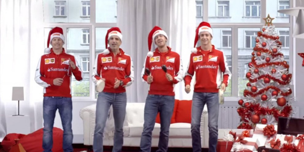 Σεμπαστιάν Φέτελ, Κίμι Ράικονεν, Γιόνας Γκουτιέρεζ και Μαρκ Ζενέ τραγούδησαν (ή τουλάχιστον προσπάθησαν) το «We Wish You a Merry Christmas», με τον Κίμι Ραικόνεν να «κλέβει» την παράσταση. Οχι, για το υποκριτικό του ταλέντο αλλά για το πόσο αμήχανα ένιωθε με το ντέφι στο χέρι.